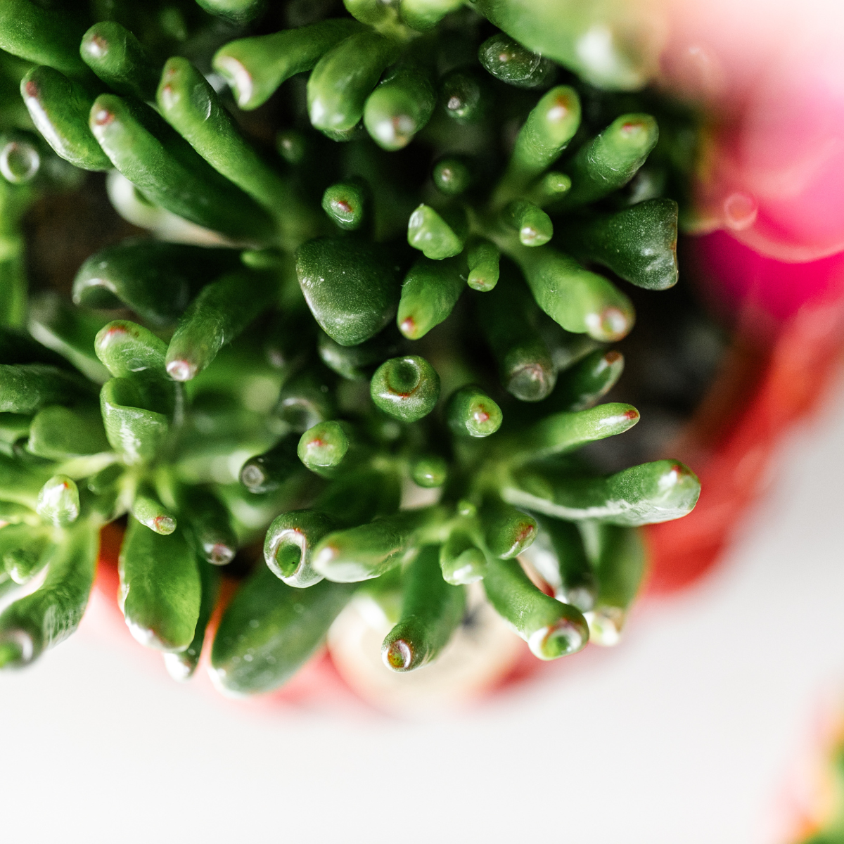 Een succulent (vetplant) heeft weinig aandacht en water nodig. Let wel op dat als je water geeft, je niet meteen een enorme sloot water geeft. Wanneer je een succulent te veel water geeft, gaan de wortels namelijk rotten. Áls de vetplant het niet overleeft, dan is dit vaak de oorzaak. Geef de plant licht, maar geen direct zonlicht. Je hoeft hiervoor geen groene vingers te hebben! Het is een sterke plant die redelijk makkelijk te onderhouden is.
