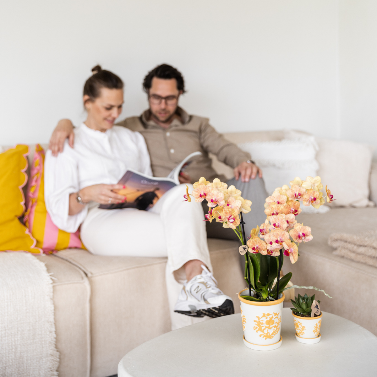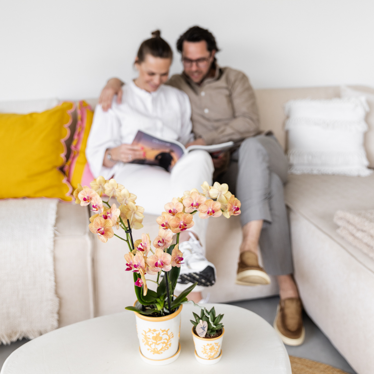 Let op: de orchidee die op de sfeerfoto's met de man en vrouw op de bank is afgebeeld is een andere orchidee. Voor de orchidee die erin staat, bekijk de losse orchidee die ook op een van de sfeerfoto's staat.